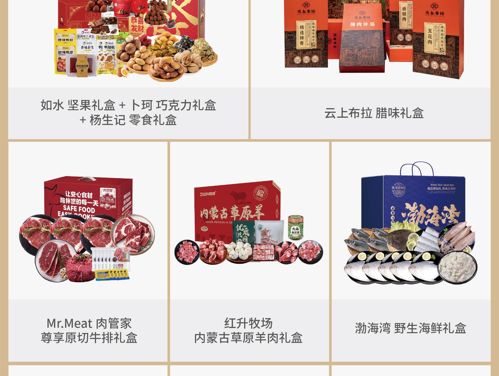 選項(xiàng)1 如水 堅(jiān)果禮盒+卜珂 巧克力禮盒+楊生記 零食禮盒