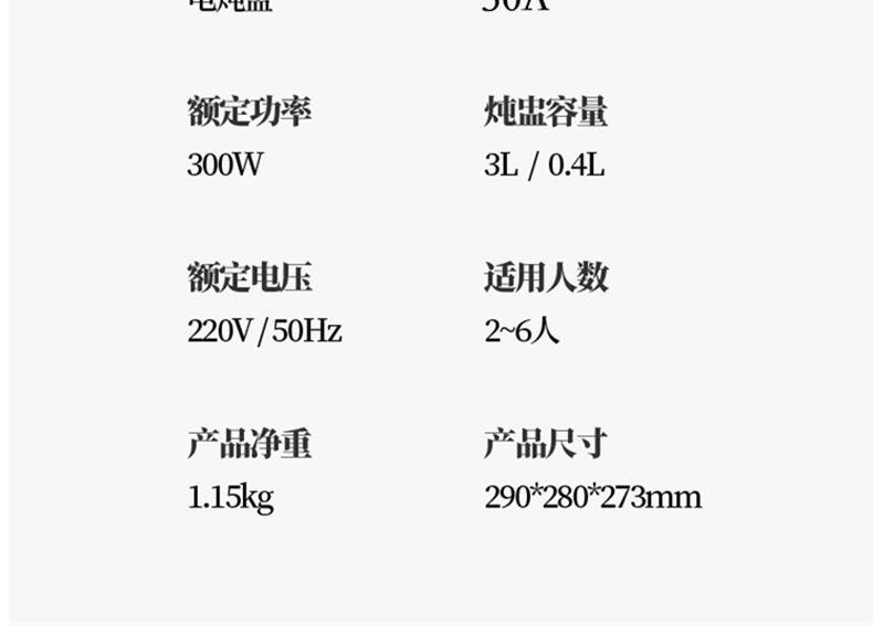 燉盅容量:3L/0.4L