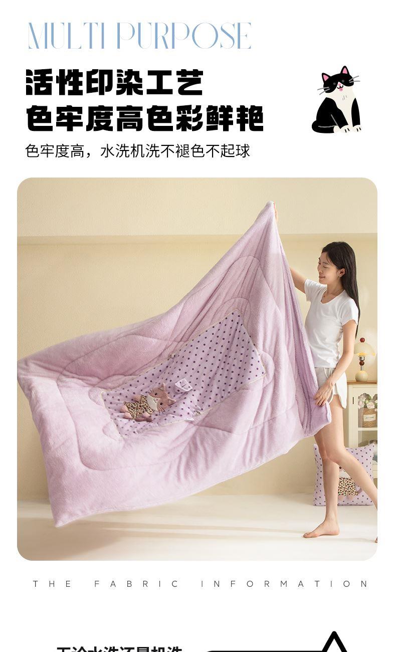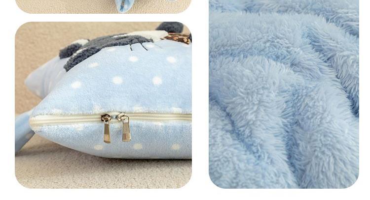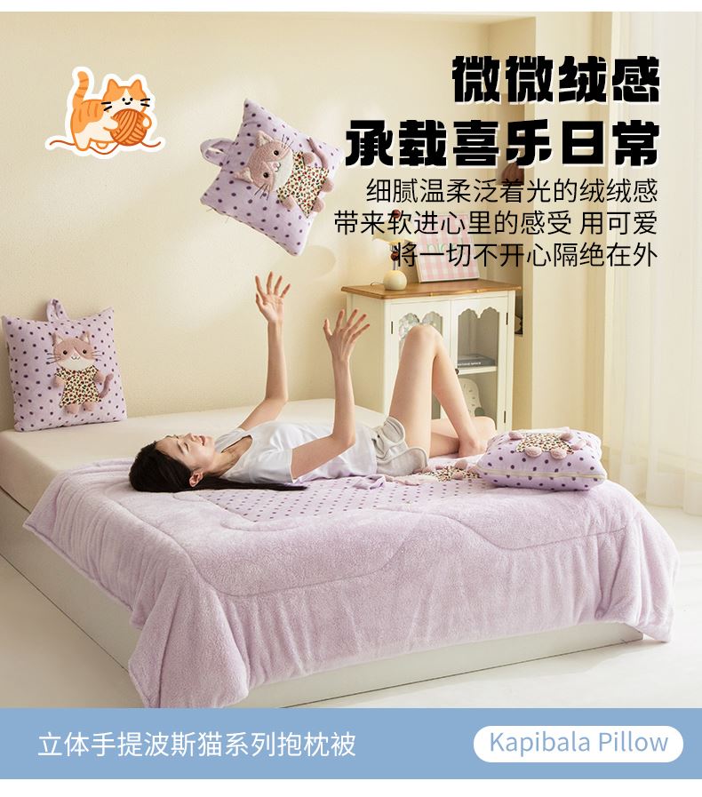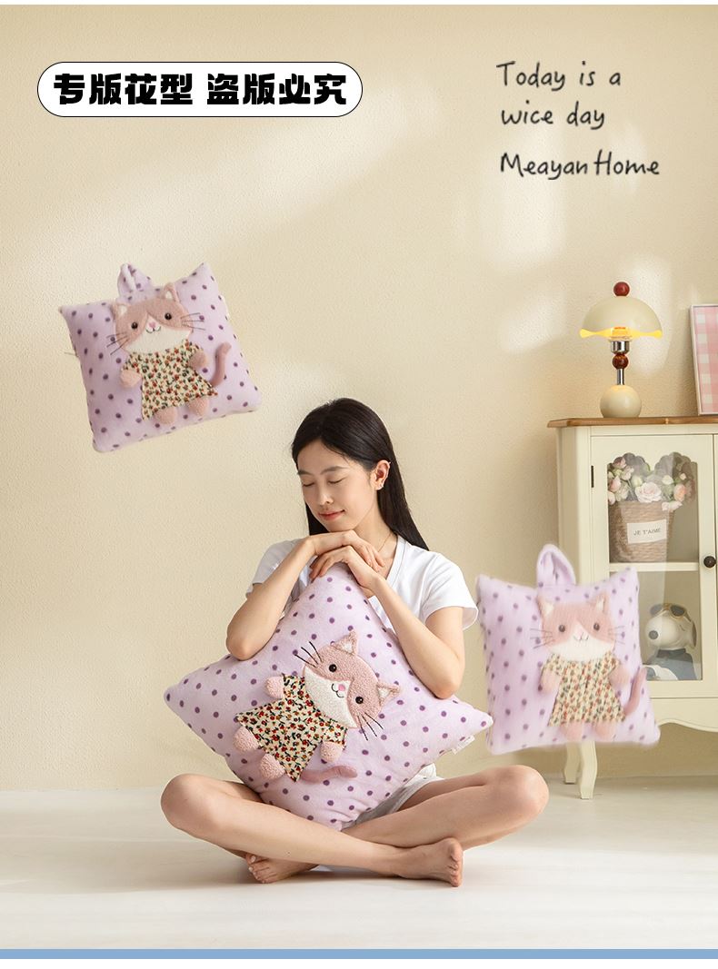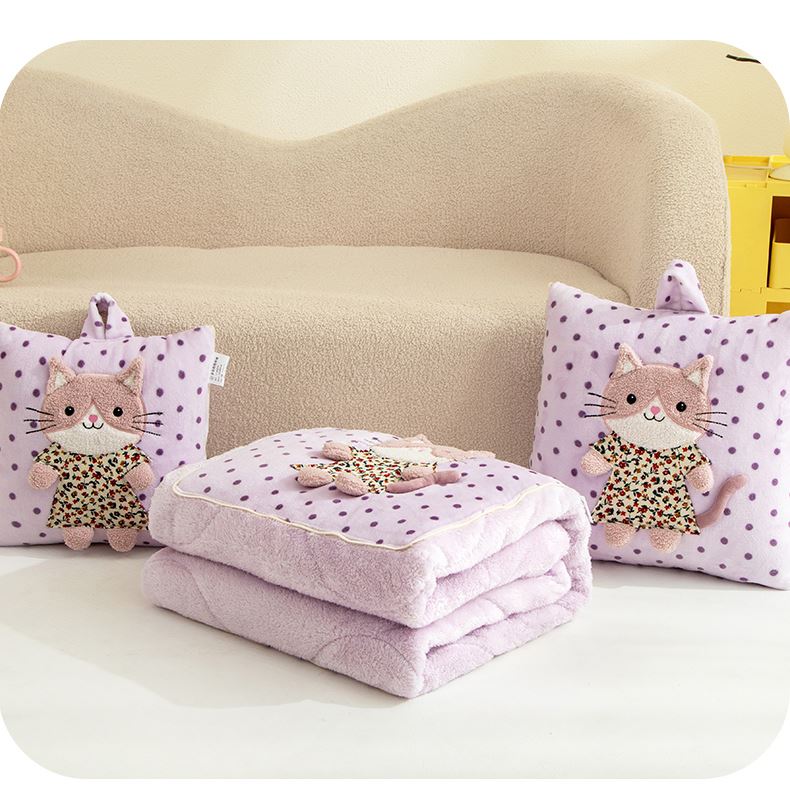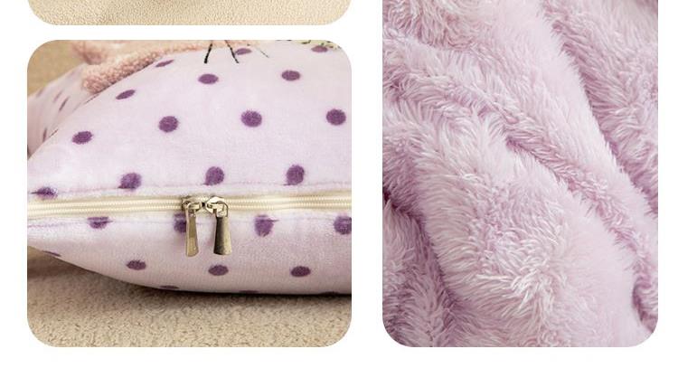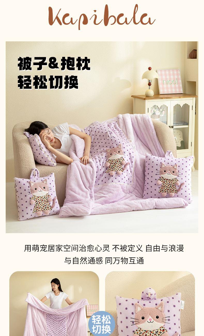 規(guī)格:40*40cm打開(kāi)被子110*150cm 面料:聚酯纖維 花色:波斯貓粉色、波斯貓藍(lán)色、波斯貓紫色 加厚柔軟保暖,順滑貼膚,隱型式拉鏈,采用整張水晶絨蓋毯,蓬松輕盈,包邊工藝更加耐用,立體公仔設(shè)計(jì),色彩靚麗,多種場(chǎng)合適用,車(chē)載客廳辦公均可,收納方便,不占地方。
