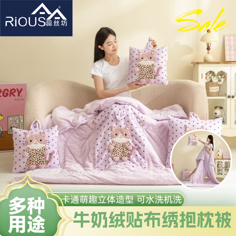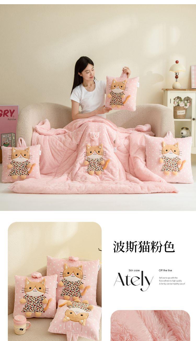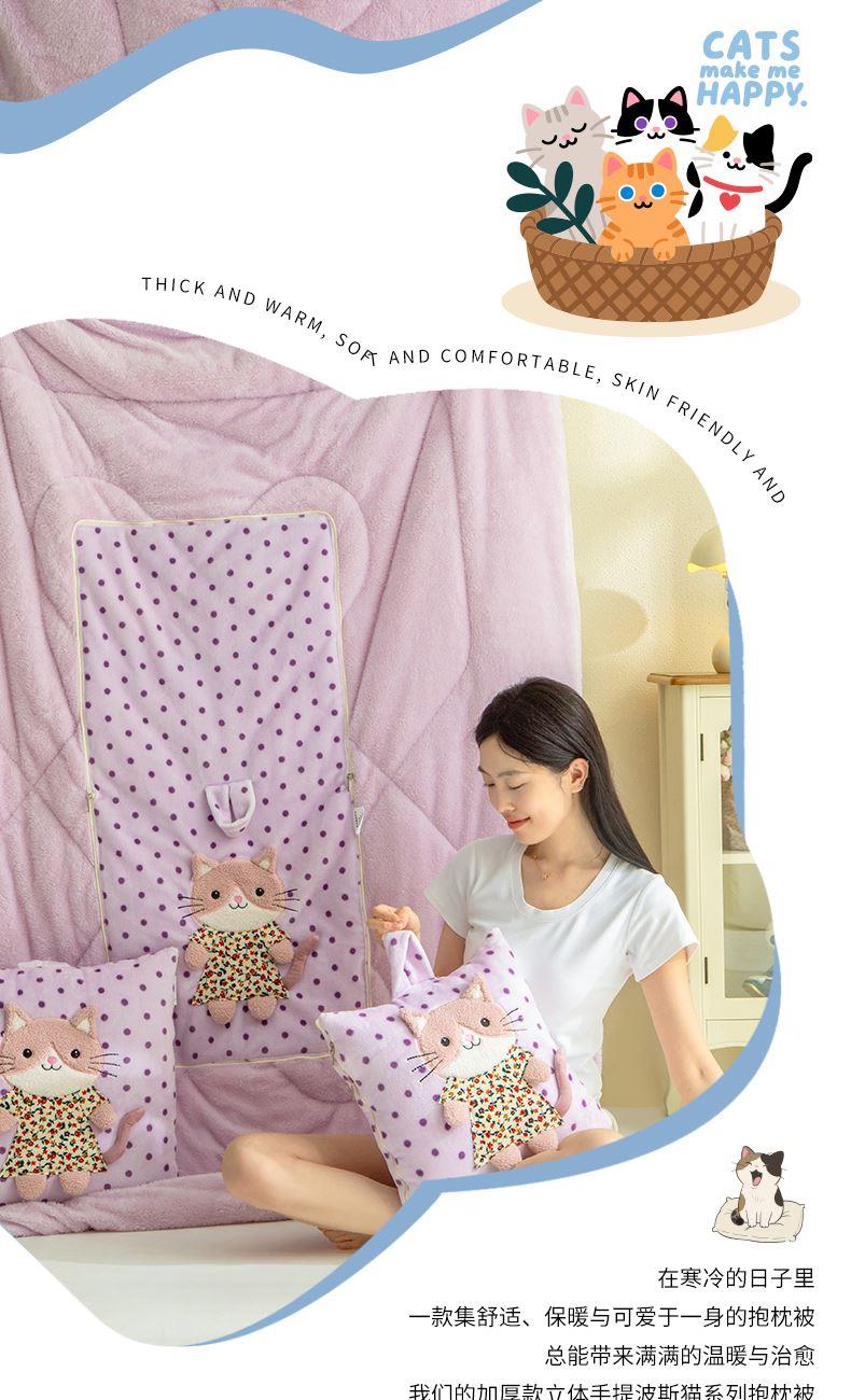 蕊絲坊新款加厚款立體手提波斯貓系列抱枕被